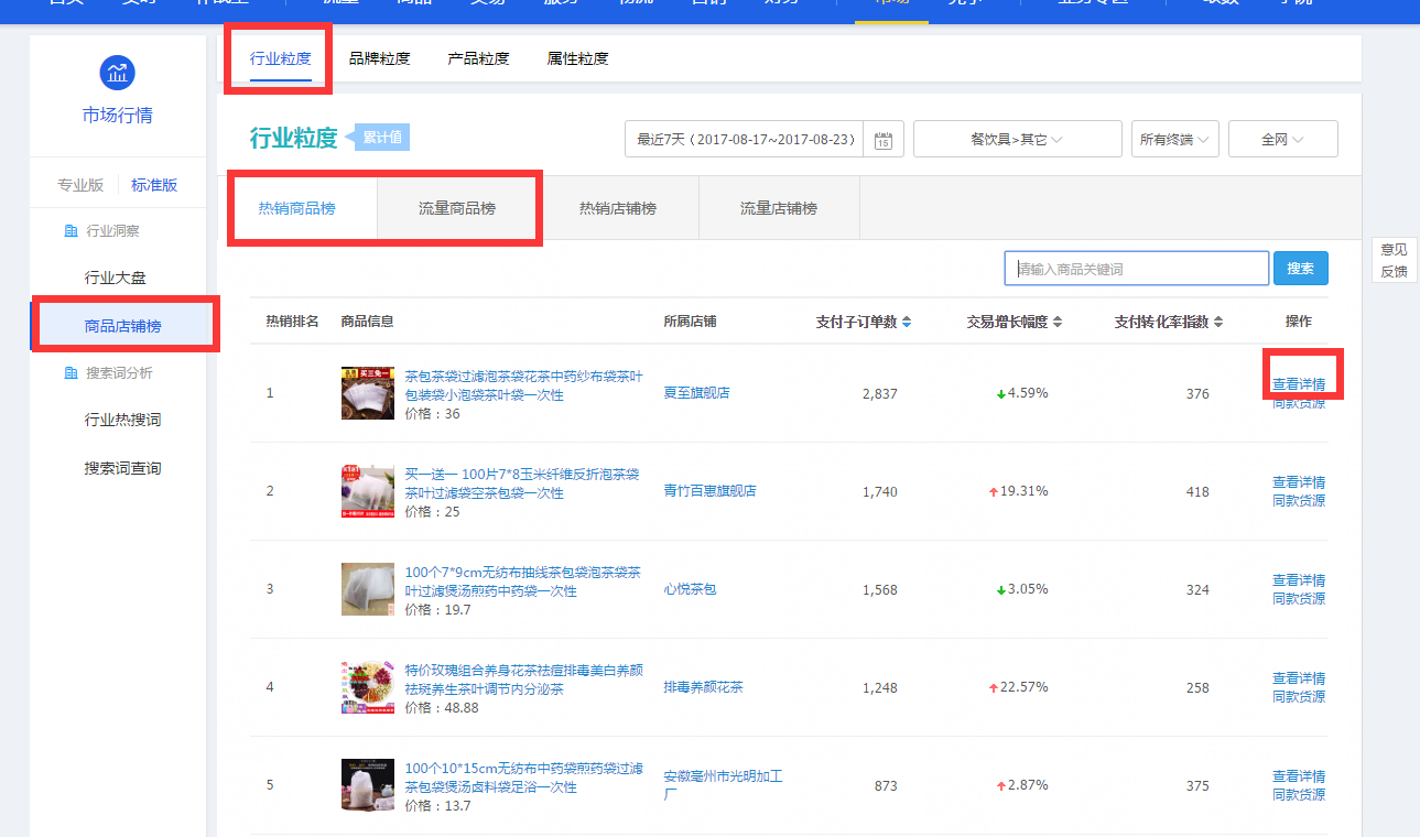 天猫代运营在生意参谋—市场—商品店铺榜去寻找高引流或者高转化的产品是否有用到我们的目标词,不要选择大词,大词我们无法和大店铺竞争,我们主要使用长尾词就可以。